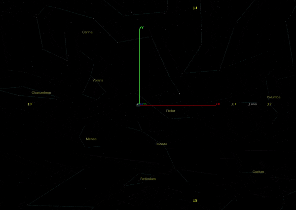 Figure 3-2: The dynamic Lagrange points of the eccentric Earth-Moon system.