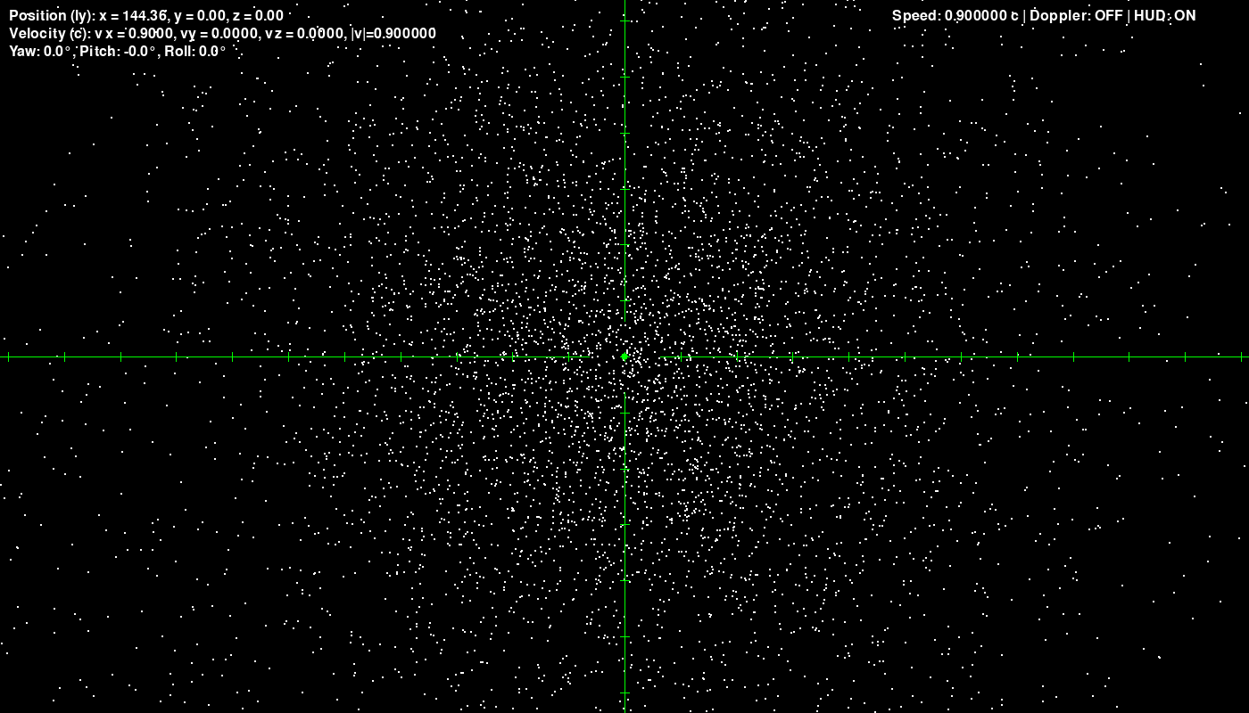 Figure 13-6: Adjusting yaw and pitch while traveling 90% the speed of light.